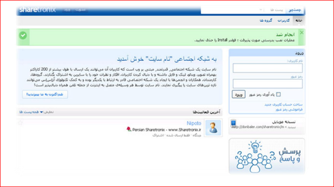 از طریق کنترلپنلِ هاست، یک دیتابیسِ خالی ایجاد کرده و Installation را اجرا نمایید. پس از مطالعهی قوانین و تایید آن، مشخصات دیتابیسِ ساخته شده را وارد نموده و گزینهی File System Storage را انتخاب کنید. در صورت نیاز، مجوزهای دسترسیِ فایل و فولدرهای ذکر شده را به 766 یا 777 تغییر داده و مشخصاتِ سایت و مدیریتِ آنرا وارد نمایید. اگر تمامی مراحل بدرستی طی شده باشد، با پیام “عملیات نصب بدرستی صورت پذیرفت” مواجه میشوید که در صورت مشاهدهی این پیام، میبایست فولدر Install را از هاستِ خود حذف نموده و سپس از پلتفورم استفاده کنید.